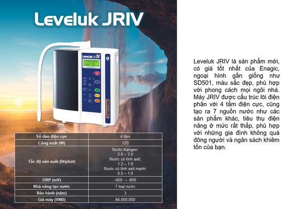 Kangen JrIV có 4 tấm điện cực rắn, giúp giảm tiêu thụ năng lượng. Do tiêu thụ điện năng thấp hơn và ít tấm hơn nên chiếc máy này được coi là một trong những mẫu “lần đầu làm chuyện ấy” của Tập đoàn Enagic Nhật Bản. Tuy chỉ là dòng máy công suất nhỏ nhưng Kangen JrIV vẫn có thể tạo ra: Nước Kangen mạnh, Nước Kangen®, Nước trung tính, Nước làm đẹp và Nước có tính axit mạnh phục vụ nhu cầu đa dạng của người dùng.